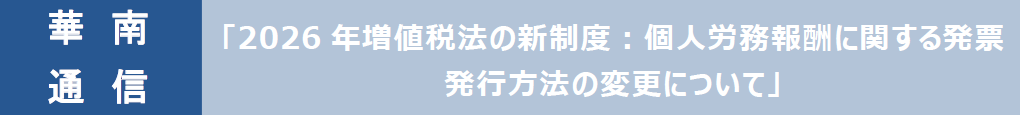 なお、《中華人民共和国増値税法条例》では支払者による増値税の源泉徴収・代理納付が規定されていますが、現時点の実務運用においては、実際に源泉徴収・代理納付を行うための具体的なルートはまだ整備されていません。今後、電子税務局において関連機能が追加される可能性があります。